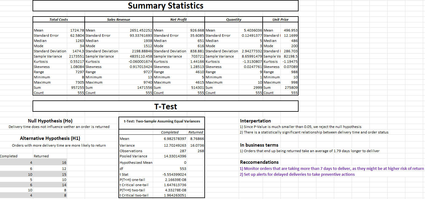 - Feature Engineering: Derived meaningful business metrics (AOV, margins, profit)